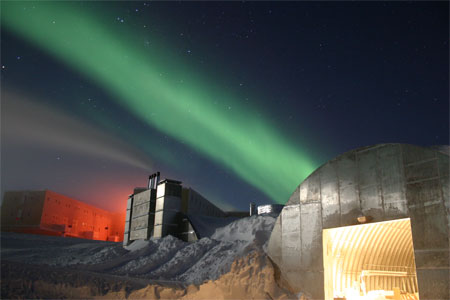 Amundsen-Scott South Pole Station and aurora during the long Antarctic night.© Cliff Dickey, 2005, NSF, USAP Photo Library