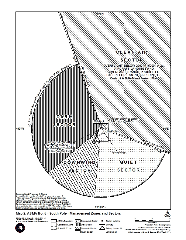 The Scientific Zone extends from the Operational Zone at Amundsen-Scott Station to the outer ASMA boundary (Map 1) and is established to protect certain types of scientific research from disturbance. Of particular concern are interference from sound, light, vibration, electro-magnetic radiation, air pollution, snow drifting, and visual obstruction. Amundsen-Scott Station has been designed so that sensitive scientific activities and instruments are strategically located away from operations that may cause interference.